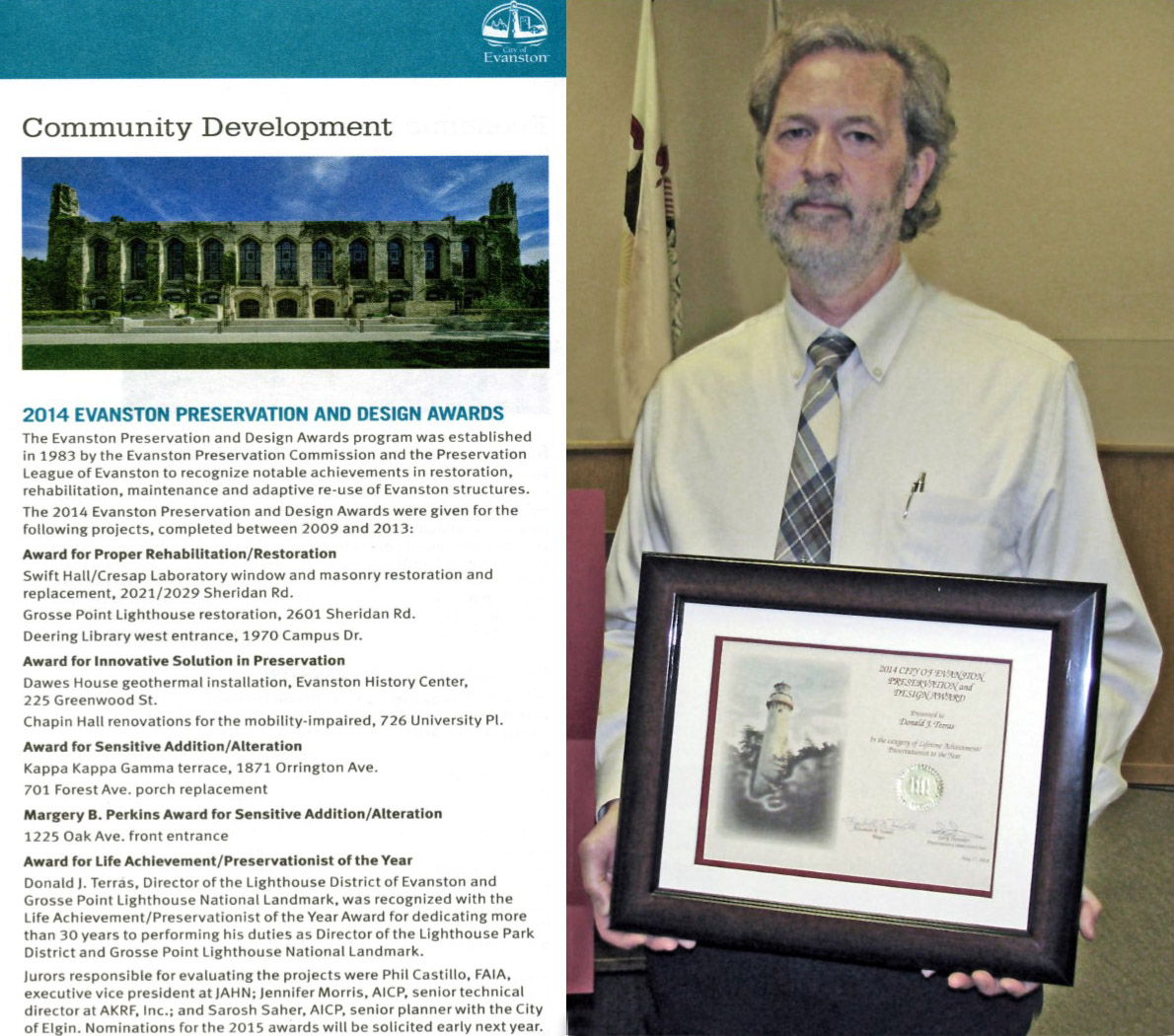 Donald J. Terras, director of the Lighthouse Park District, has worked in the administration of landmark property at a broad range of private and public educational institutions including the Evanston History Center's Dawes House Museum, Department of Anthropology at the Milwaukee Public Museum and as Guest Curator in the Department of Special Exhibits at the John G. Shedd Aquarium in Chicago. Mr. Terras is chief administrator of The Lighthouse Park District, a unit of local government in Evanston, IL, and manages daily affairs of the District and also the District-operated Grosse Point Light Station museum under the title of Lighthouse Keeper. This structure was designated a National Historic Landmark by the United States Department of the Interior on the strength of a nomination submitted by Mr. Terras and is one of few lighthouses in the country to have obtained this designation. Mr. Terras’ work has been recognized with the Margery Perkins Award from the Evanston Preservation Commission and Richard H. Driehaus Award from the Landmarks Preservation Council of Illinois (Landmarks Illinois). Both awards are the highest possible honor accorded locally and within the State of Illinois, recognizing outstanding achievement in preserving and interpreting Grosse Point Lighthouse as an historic site museum. Mr. Terras has also received the Professional of the Year Award from the Illinois Association of Museums for his work that includes research, interpretation, adaptive use preservation planning, publishing, and teaching museum studies at both the undergraduate and graduate college level. Nationally, Mr. Terras served on the American Lighthouse Coordinating Committee, a 12-member task force that established a National Lighthouse Museum in New York City and he is past president of the American Lighthouse Council, a national lighthouse preservation and education oversight agency now an affiliate of the U.S. Lighthouse Society. Mr. Terras is a recipient of the Lifetime Achievement Award from Evanston for his many years of exceptional stewardship at Grosse Point Lighthouse and has also received the American Lighthouse Council’s F. Ross Holland Distinguished Service Award.